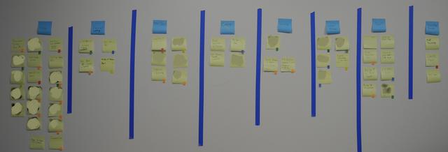 To manage the birds-eye view of my work, I use a Kanban-style board made of Post-It notes and painter’s marking tape on the wall of my office.