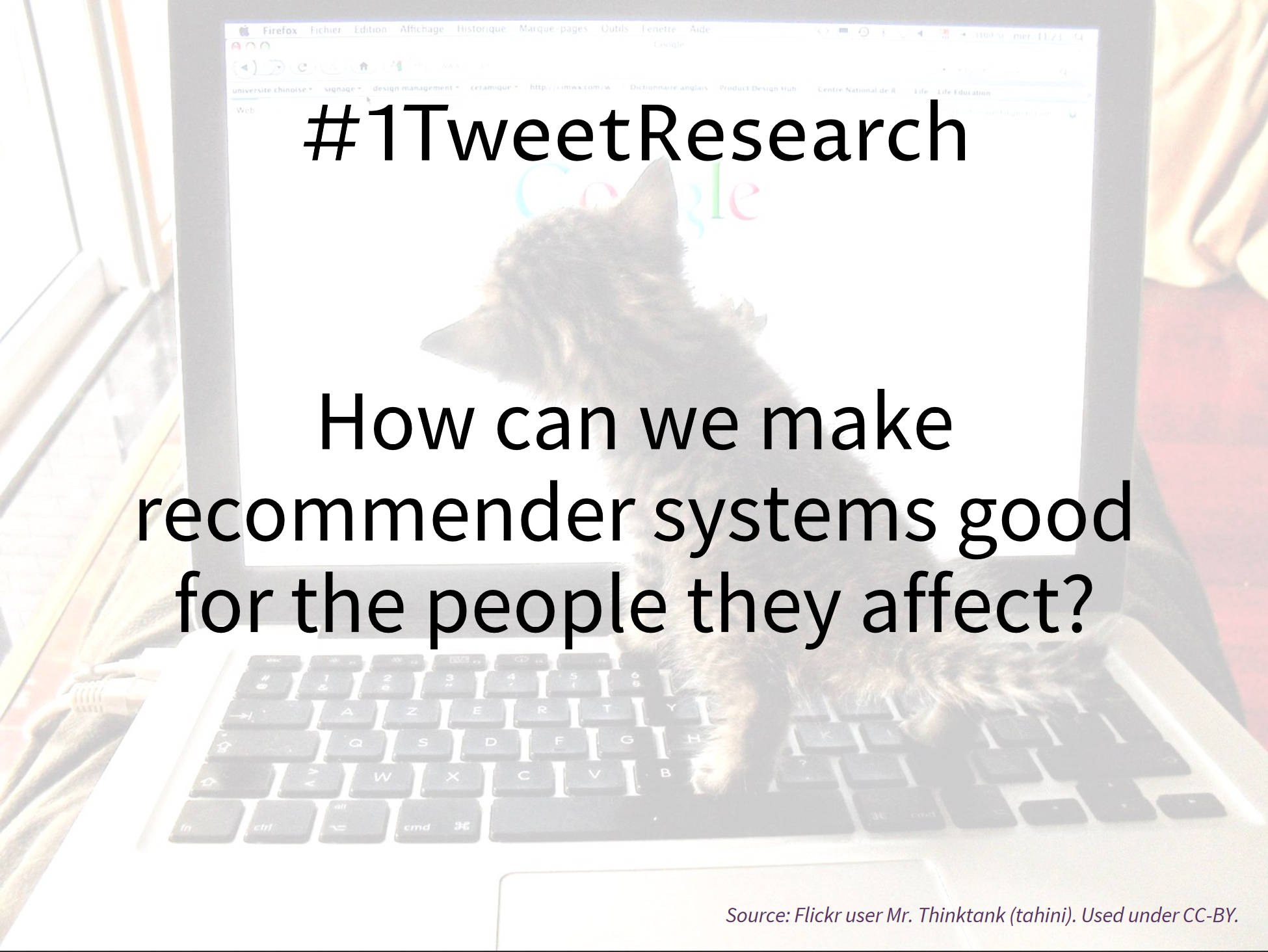 I’ve been adopting something like this in my talks for a few years now. When I’m giving a research seminar, one of my first few slides is ‘#1TweetResearch’: how would I convey, in a single tweet, the overall thrust of my work? Here’s the slide from my last seminar: