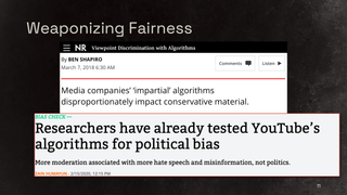 But as I’ve been thinking through this and trying to work on and really get a solid theory of what am I trying to do with all this fairness research and work and why, and seeing how fairness discourse gets used and misused, a question arises: is the goal to make the information retrieval system fair?