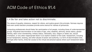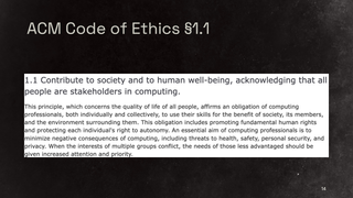 Let’s look at the ACM Code of Ethics for the Association of Computing Machinery.