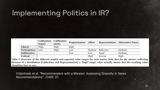 So, Sanne Vrijenhoek and her collaborators did this piece where they looked at IR diversity metrics and how they map to specific theories of democracy. Liberal democracy, participatory, deliberative.
