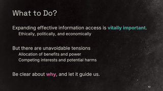 Access to information, effective access to information, and expanding that effective access is really, really important. For ethical reasons, for political reasons, for economic reasons.