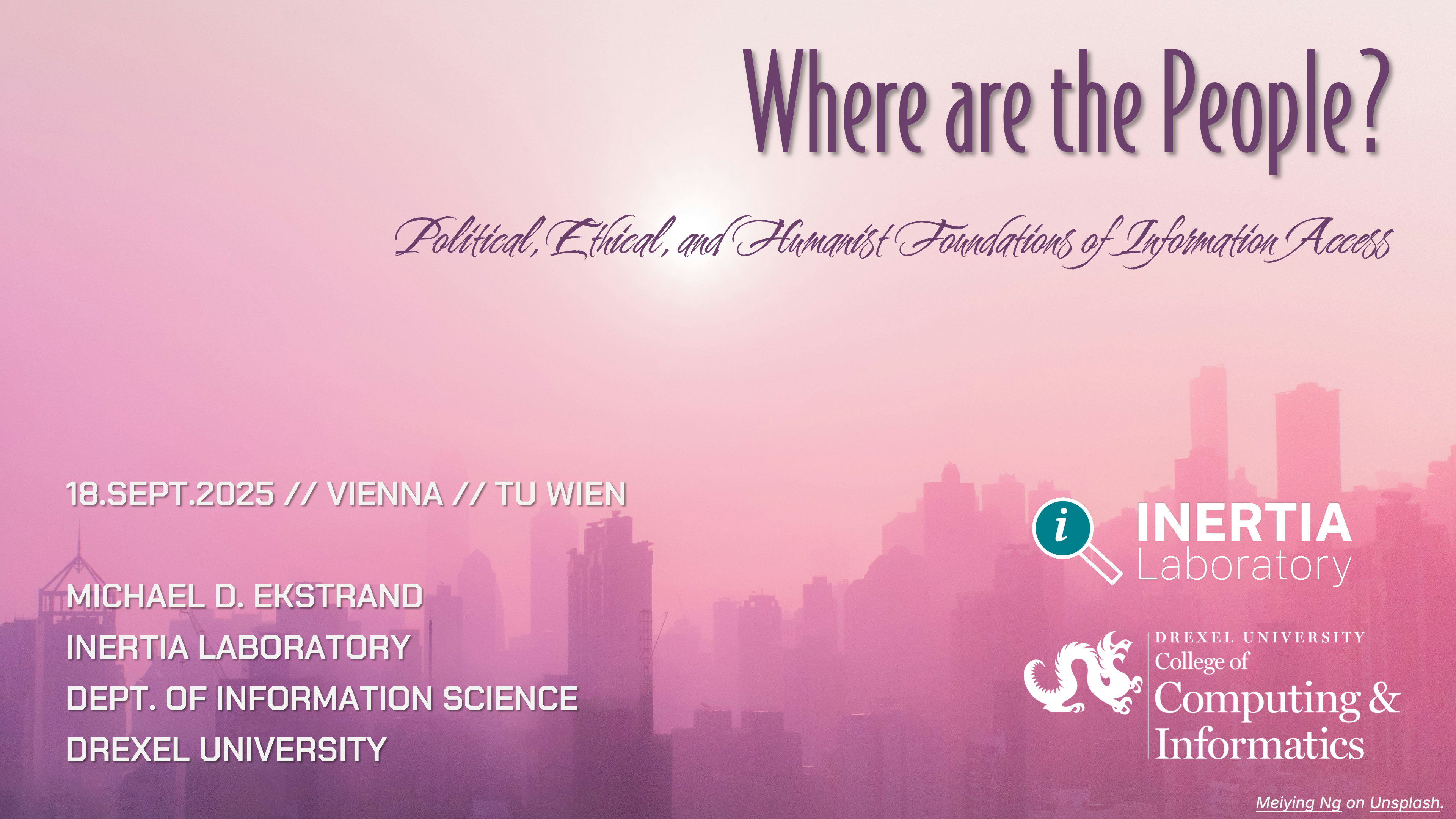 “Where are the People? Political, Ethical, and Humanist Foundations for Information Access”, a public lecture at TU Wien on September 18, 2025.